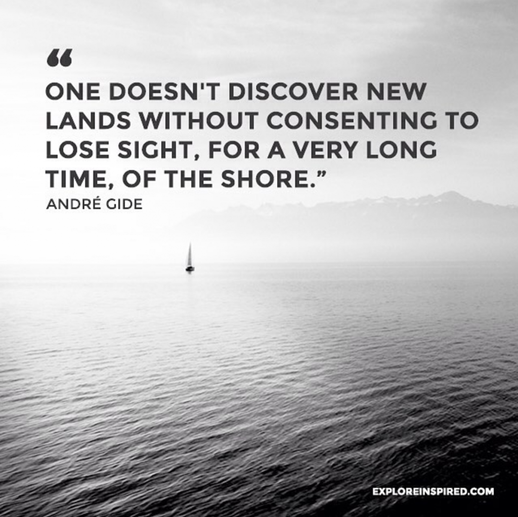 4. “One doesn’t discover new lands without consenting to lose sight, for a very long time, of the shore.” – Andre Gide (click to tweet)