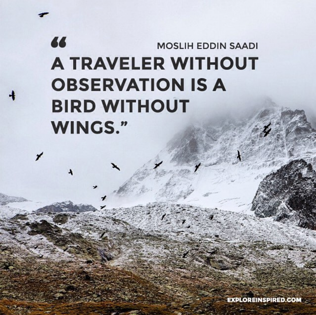 2. “A traveler without observation is a bird without wings.” – Moslih Eddin Saadi (click to tweet)
