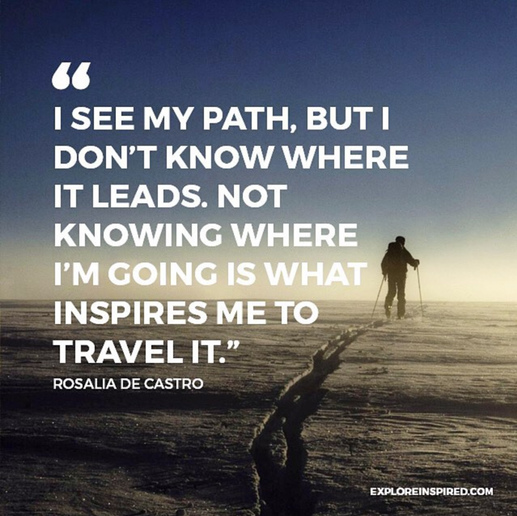 8. “I see my path, but I don’t know where it leads. Not knowing where I’m going is what inspires me to travel it.” – Rosalia de Castro (click to tweet)