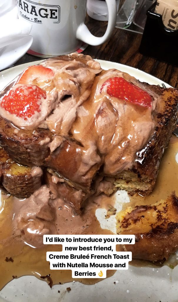 We got coffees, while Mom was happy with her Baileys cappuccino. Chris ordered the Going Back to Cali omelet which, you guessed it, isn’t shy on avocado, and Mom had the Steel Cut Oatmeal. I wanted something light to start the day, know we’d have a lot of places in front of us. With that in mind I went for the Creme Brulee French Toast with Nutella Mousse and Berries.